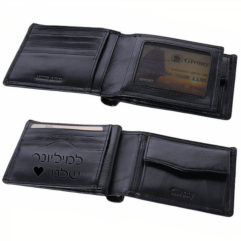 ארנק עור "גבעוני" המכיל 16 תאים עם הקדשה אישית לגבר