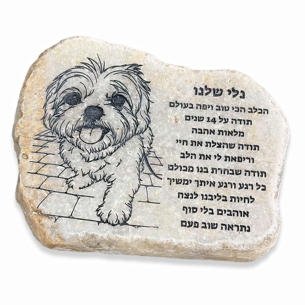 אבן להנצחה של בעל חיים עם תמונה והקדשה