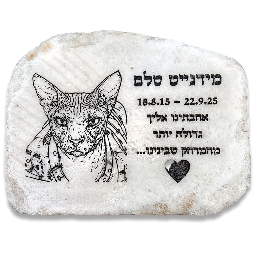 - אבן טבעית גוון לבן עם חריטה לבקשתכם