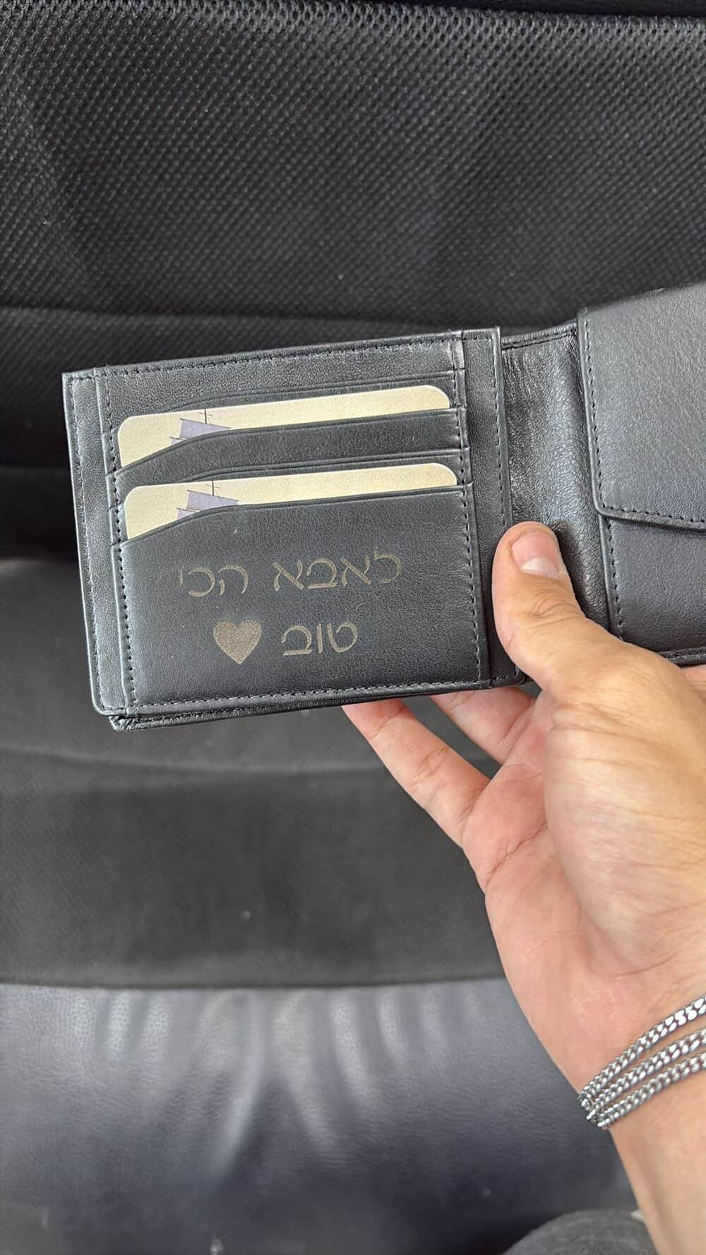 ארנק עור "גבעוני" המכיל 16 תאים עם חריטה אישית לגבר