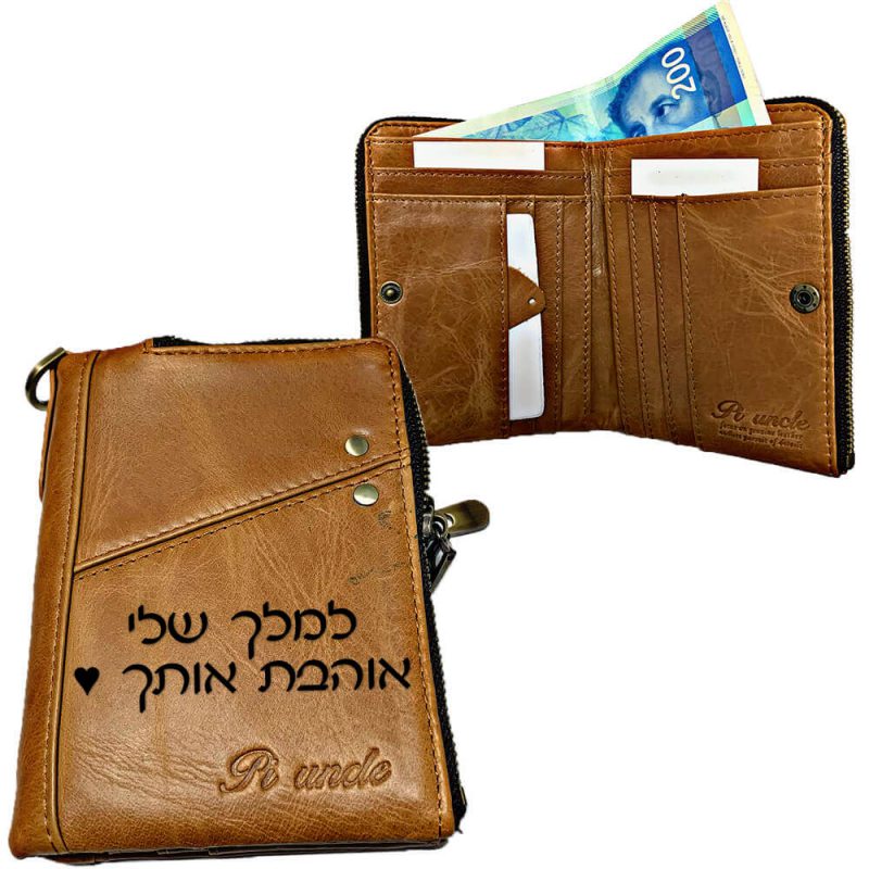 • ניתן להוסיף חריטה אישית על הארנק עור לגבר עם רוכסן כפול