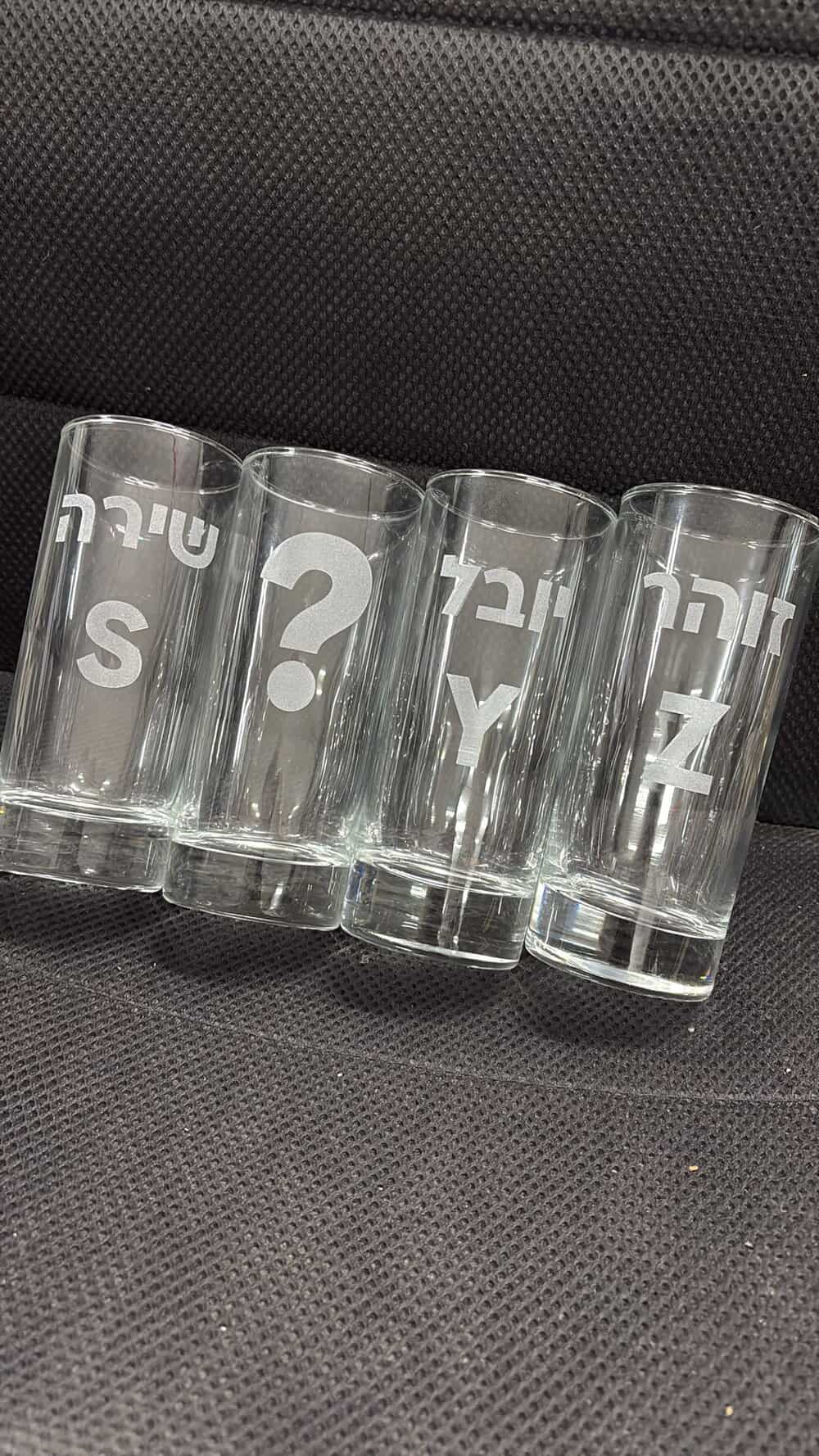 את הכוסות תוכלו לקשט בחריטה אישית שתבחרו לגמרי לבד – יכול להיות מדובר בשם מקבל המתנה או ראשי התיבות של השם שלו, בבדיחה שקשורה לאלכוהול או בכל משפט שנון אחר שעולה לכם על הדעת.