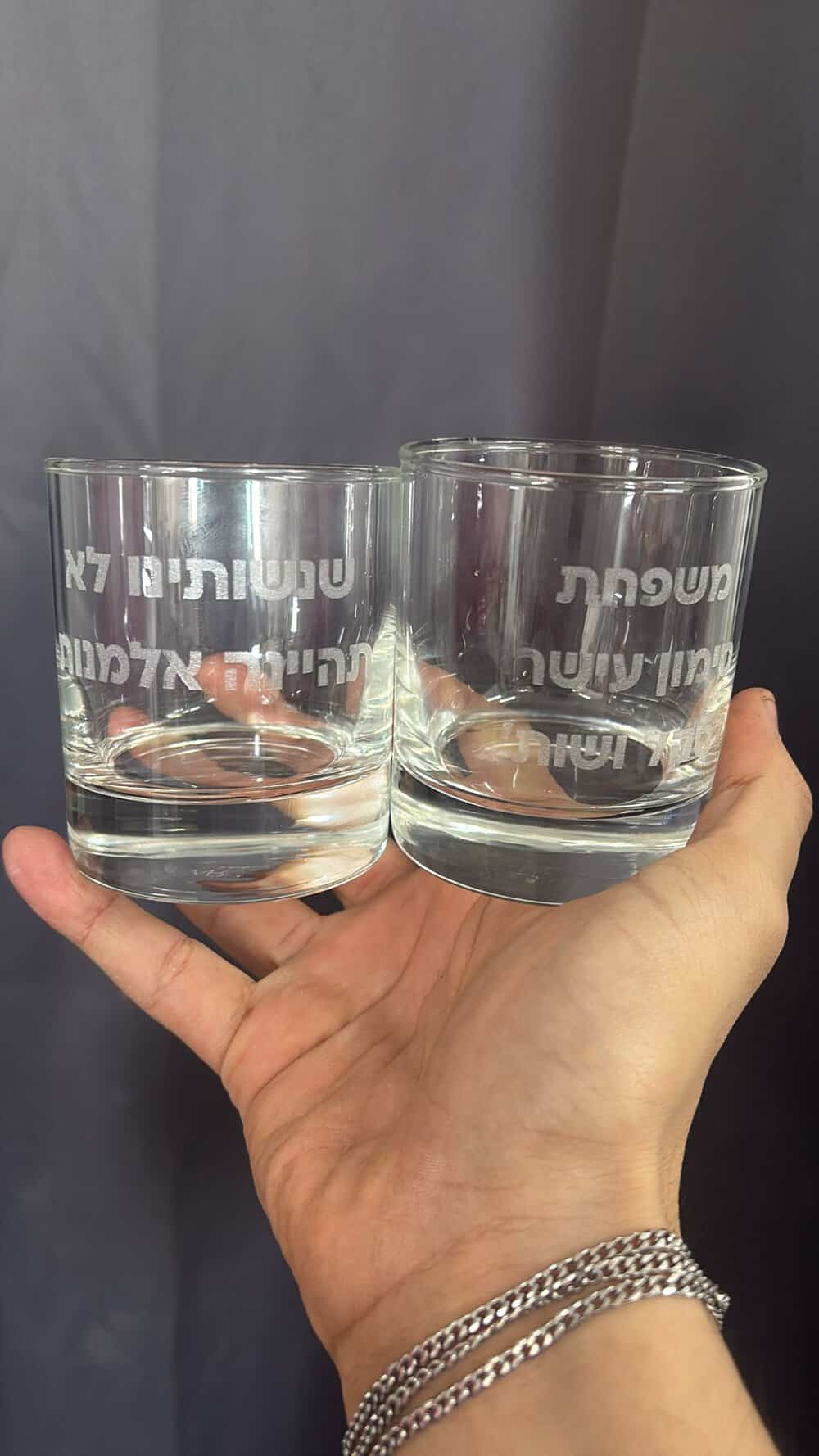 כוסות וויסקי עם כיתוב של שמות וחריטה אישית