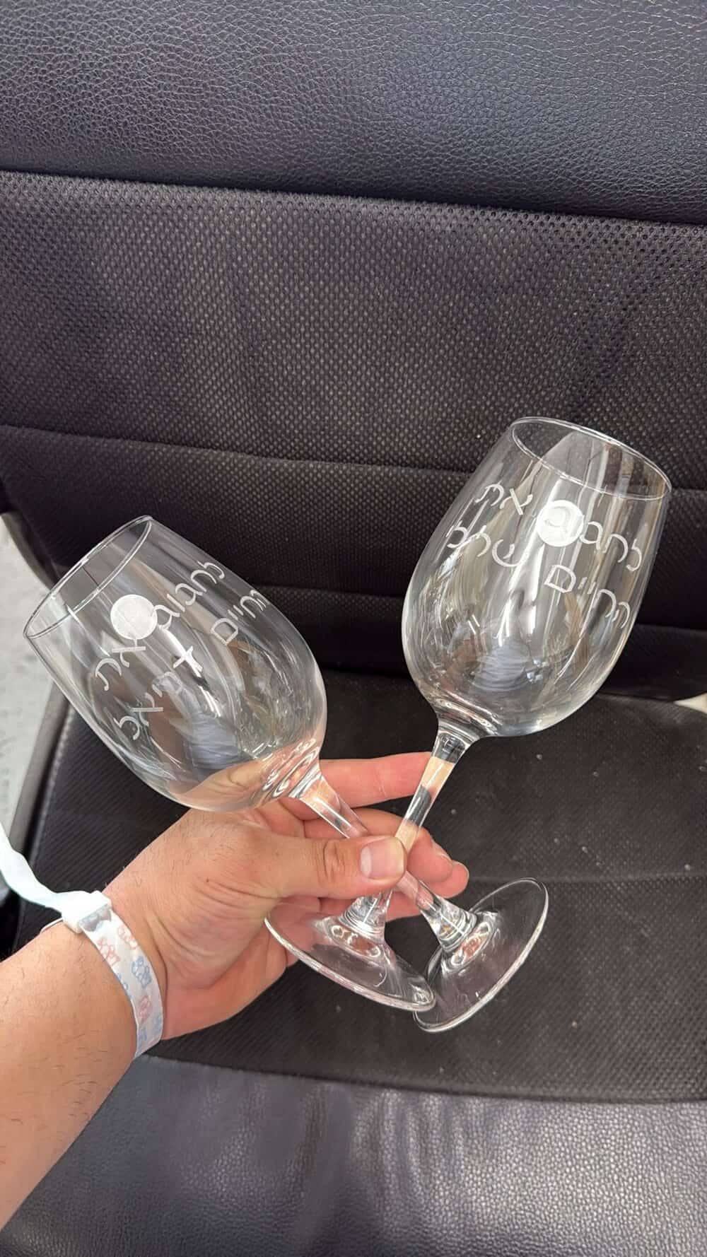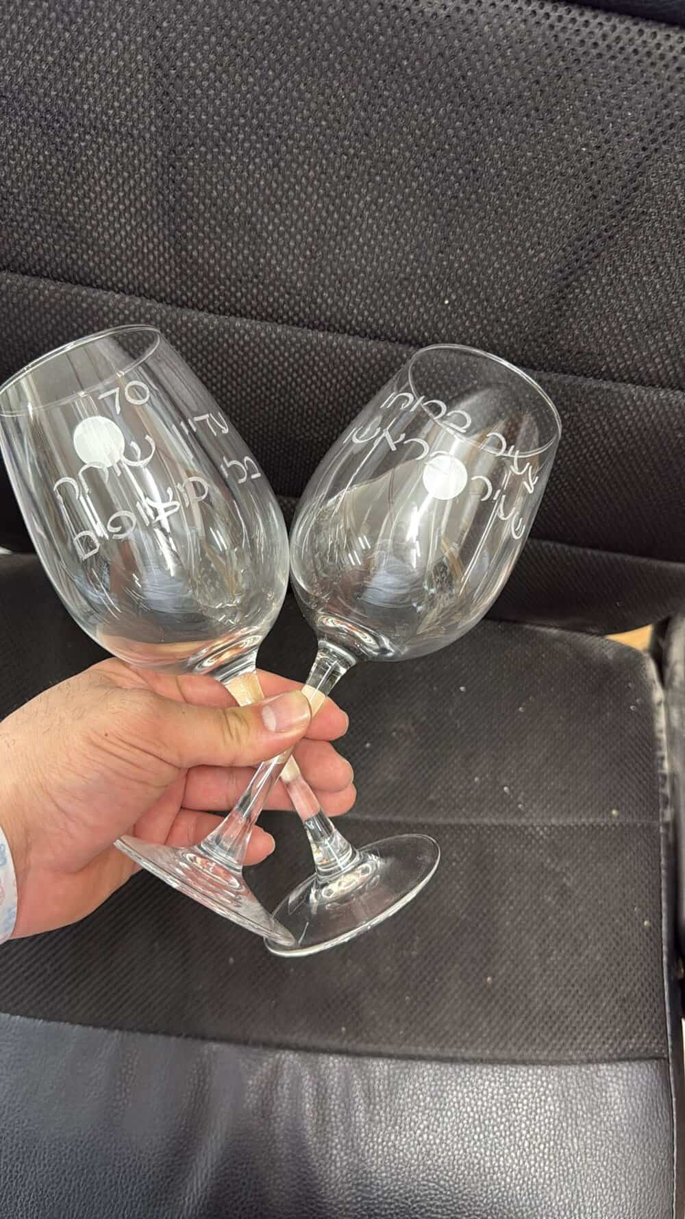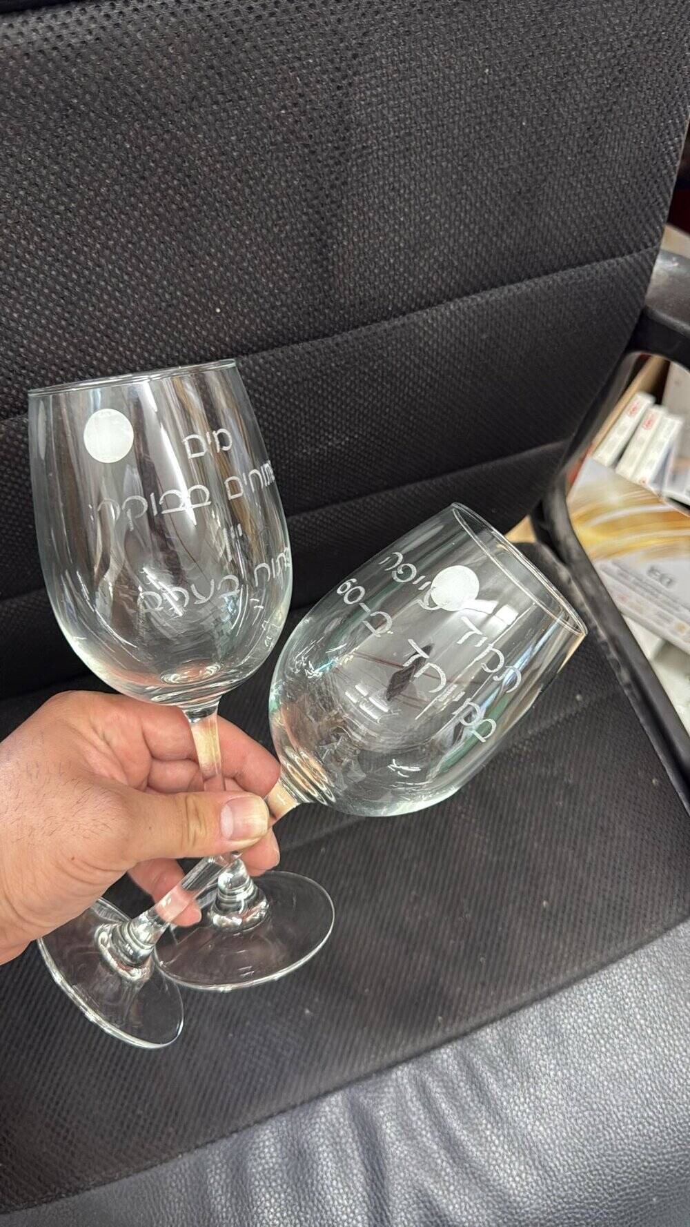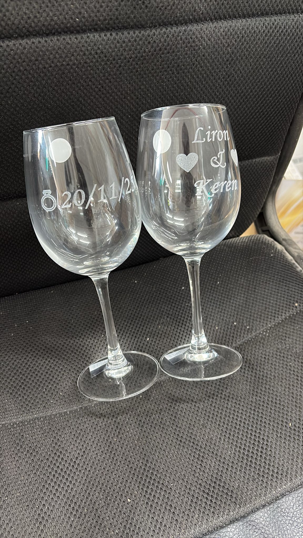 כוסות יין עם כיתוב של שמות וחריטה אישית
