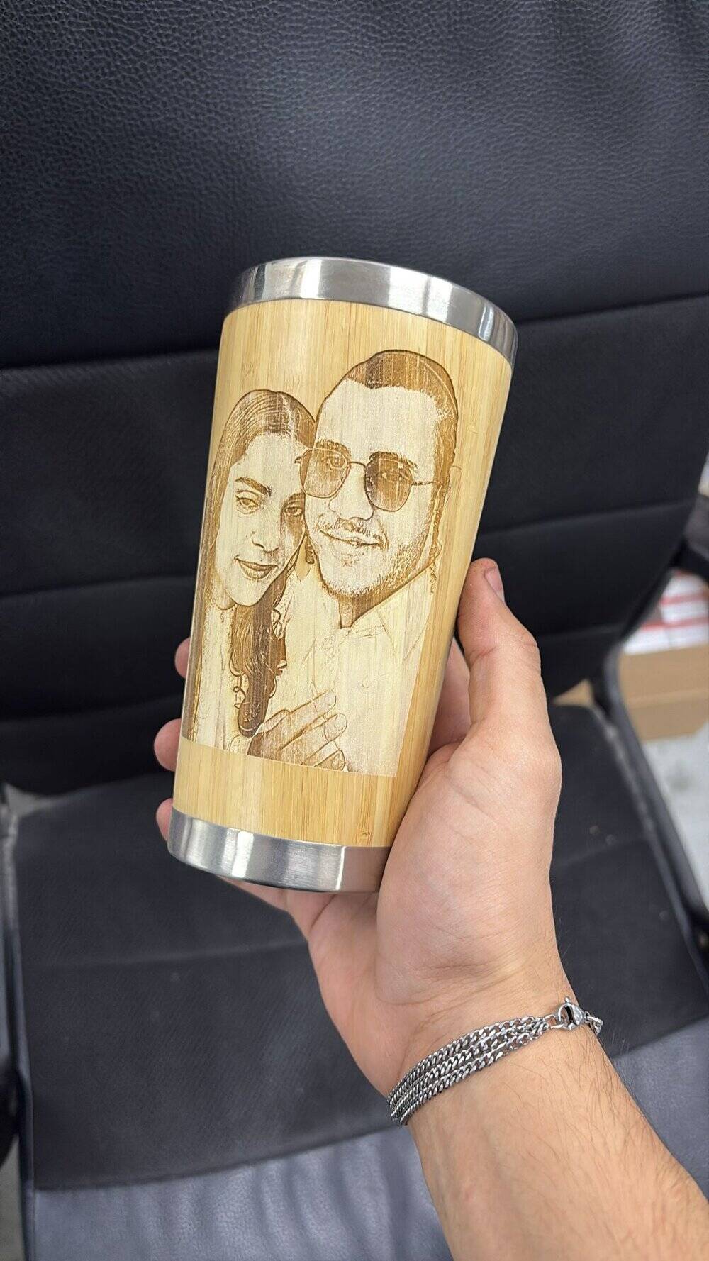 כוס תרמית עם חריטה