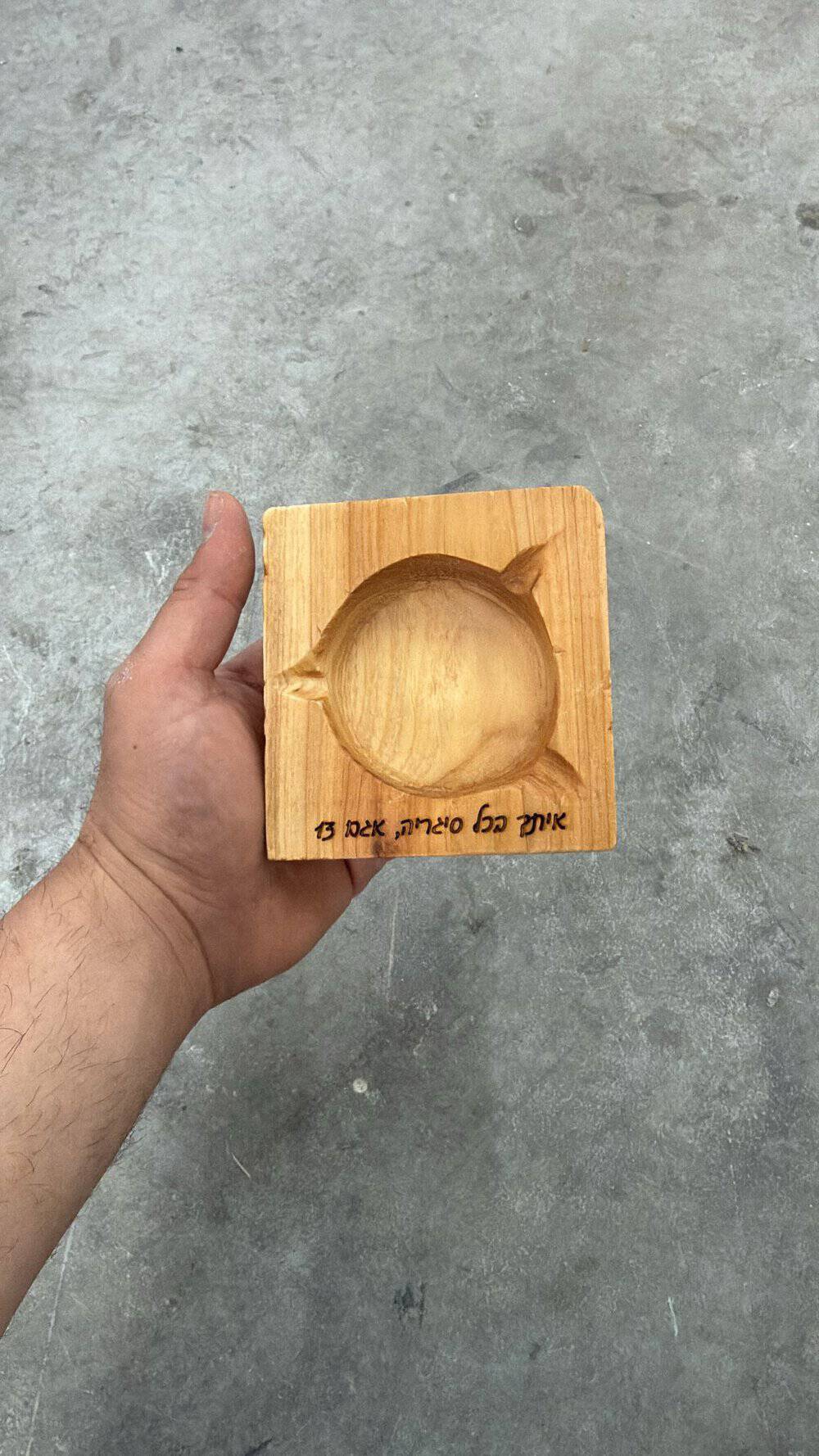 • מאפרה עשויה עץ איכותי עם חריטה