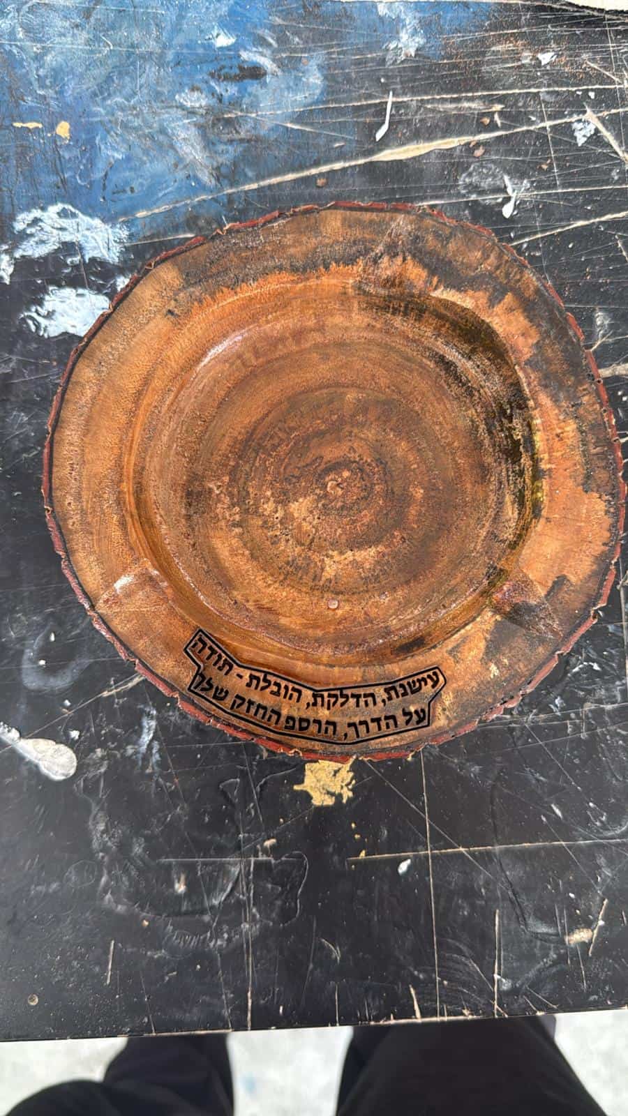 בקצרה על מאפרה פרוסת גזע עם חריטה: