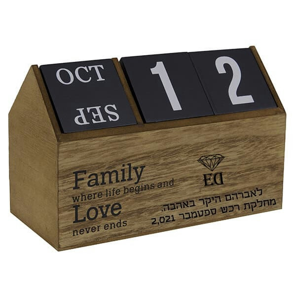 מעמד קלנדר תאריכון קוביות עץ עם חריטה אישית