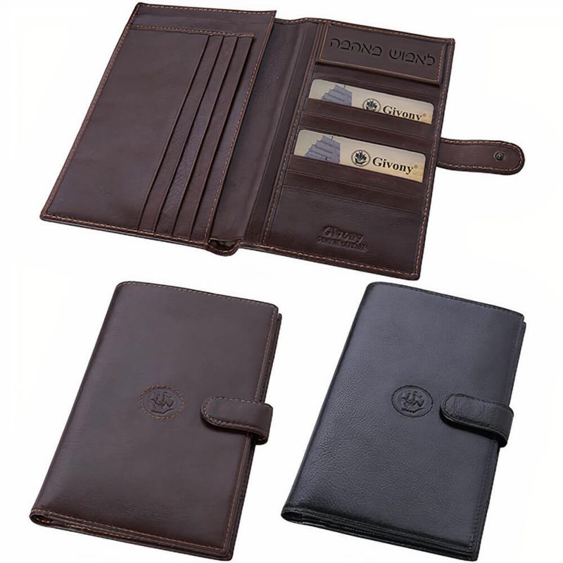 נרתיק נסיעות מהודר מעור אמיתי "גבעוני" המכיל 9 תאים עם חריטה אישית לגבר