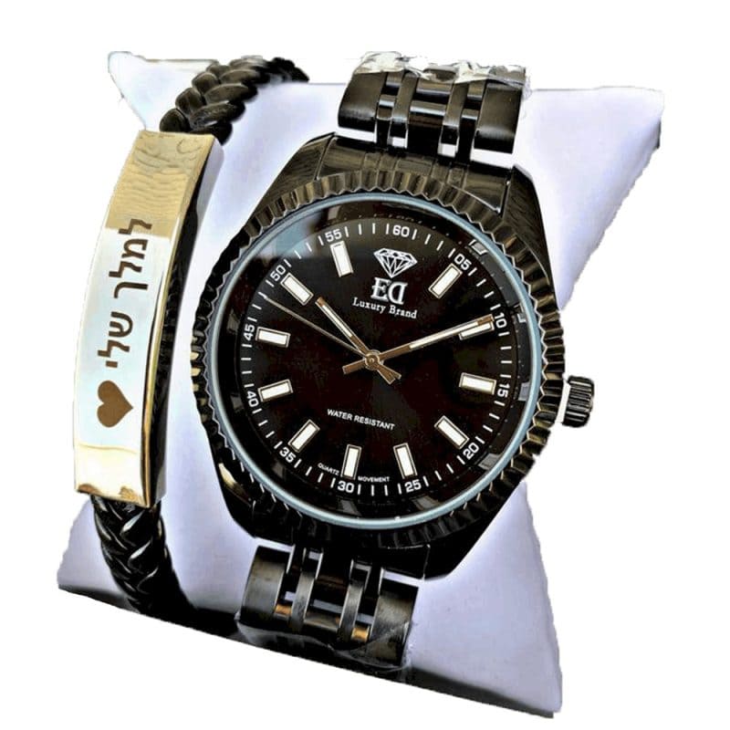 סט שעון וצמיד לגבר עם חריטה – אלפא