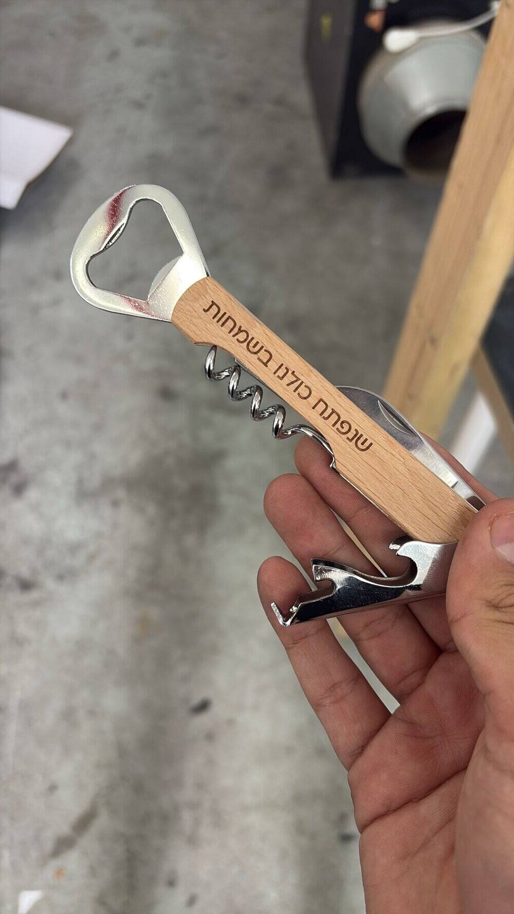 על גבי פותחן היין תוכלו להוסיף חריטה בלייזר שאנחנו נבצע על גבי העץ,