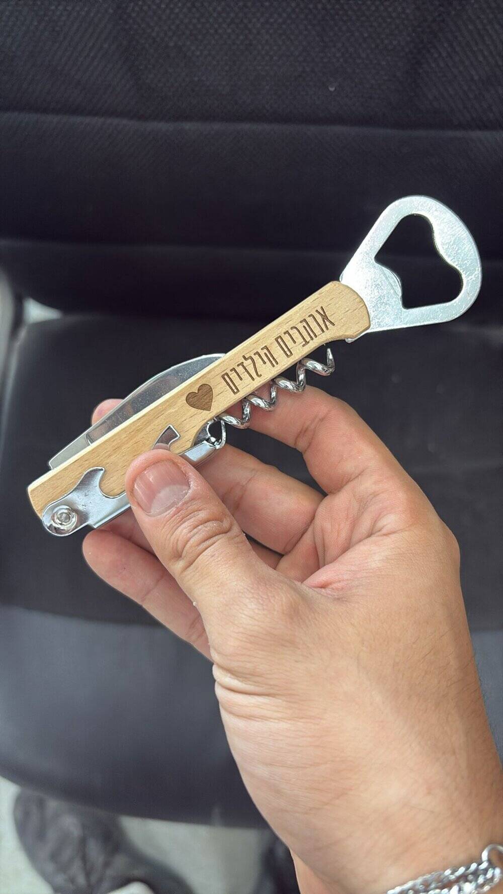 מחפשים כיצד להפתיע אנשים קרובים עם מתנה מרגשת ומקורית? מתנה שימושית ביותר לכל אדם אהוב? פותחן יין מקצועי וייחודי במינו, זאת המתנה המגניבה ביותר לרגל כל אירוע יום הולדת או כל מאורע חגיגי אחר. פותח יין עשוי עץ איכותי – המתנה המושלמת ביותר לכל אדם חובב היינות. פותחן יין שימושי מעץ איכותי ואמיתי. הפותחן בעל 4 אפשרויות שונות הכוללות פותחן בירה וסכין נשלפת – מה שהופך את הפותחן לכלי שימושי לכל סיטואציה קיימת.