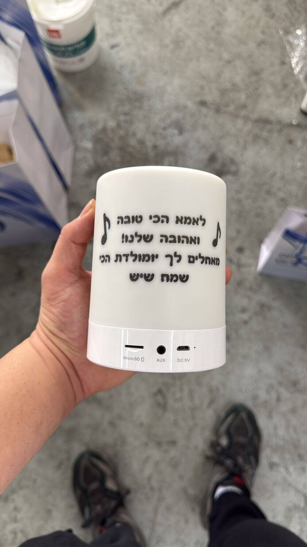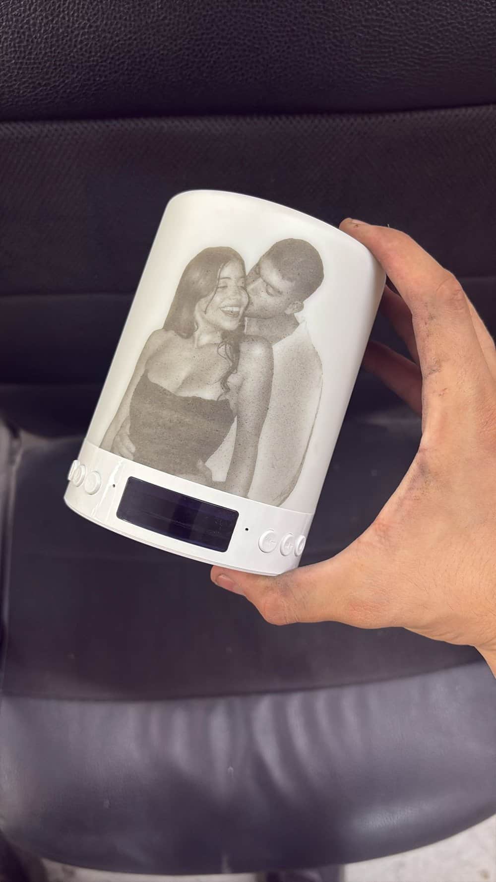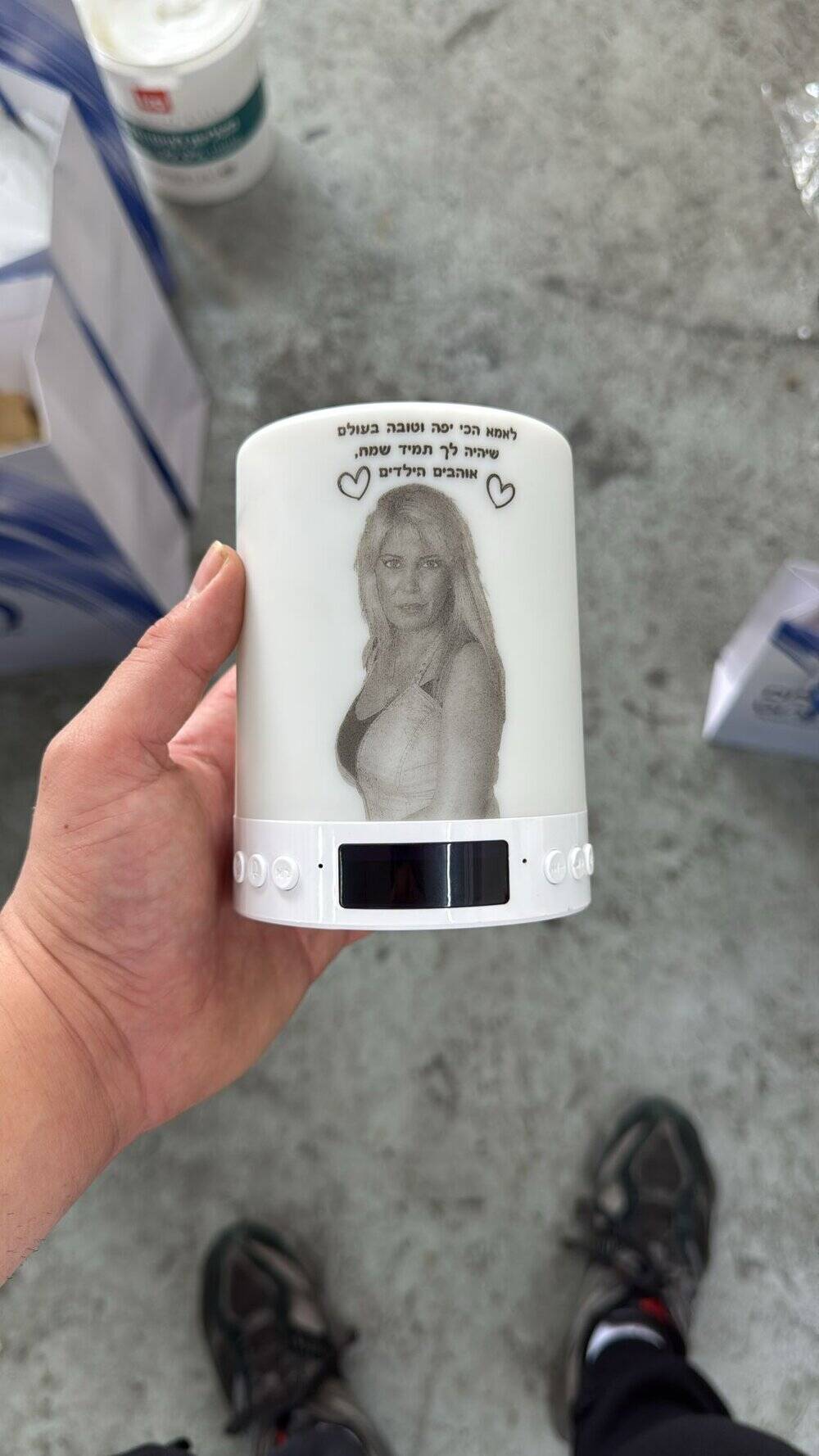 בקצרה על רמקול נייד משנה צבעים עם תמונה והקדשה אישית: